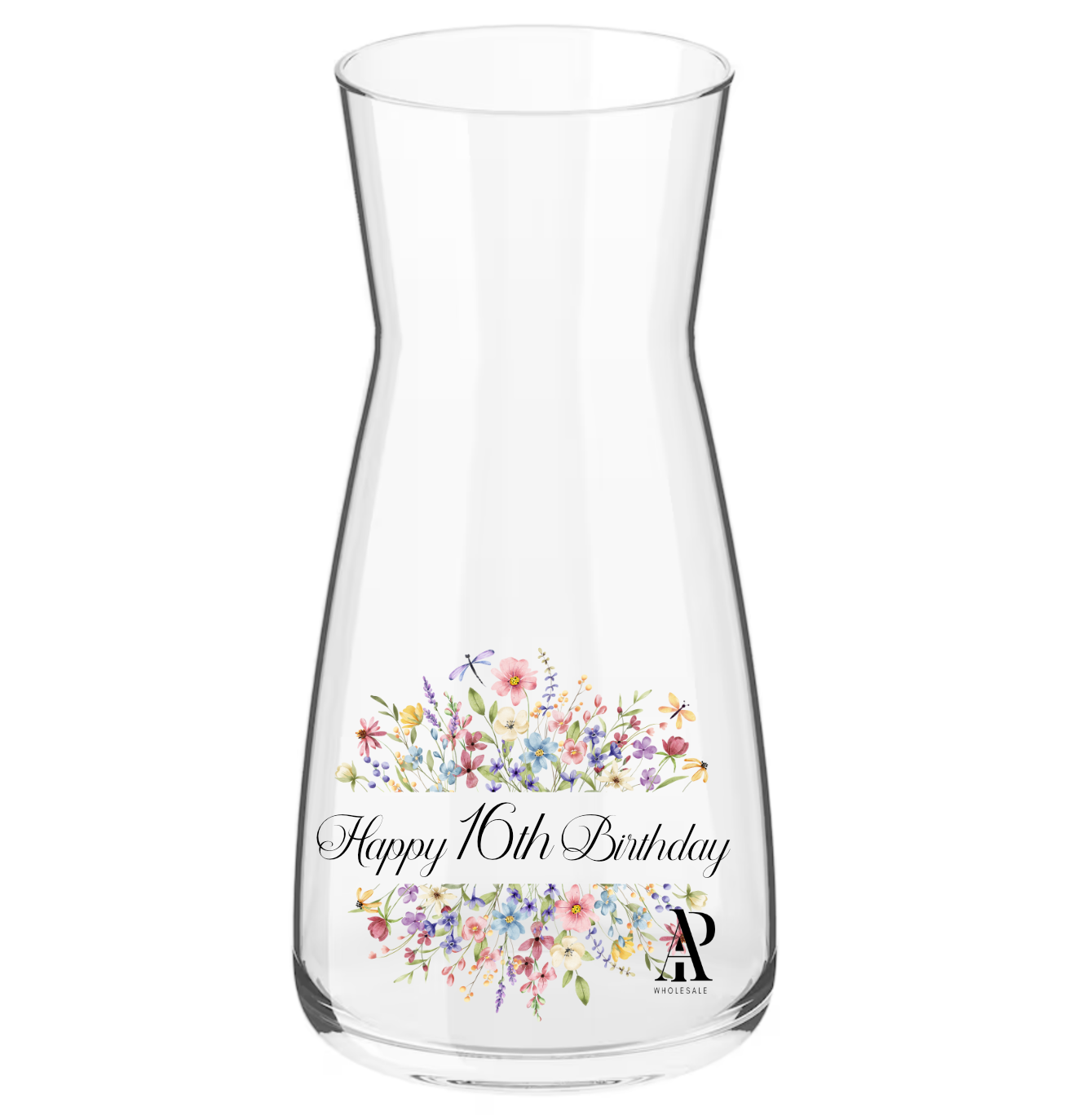 Personalised Milestone Birthday Glass Vases – Custom Floral Design