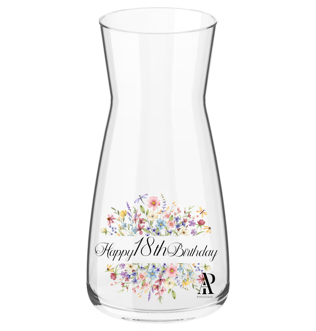 Celebrate life’s biggest milestones in elegant style with our Personalised Milestone Birthday Glass Vases, beautifully adorned with a delicate floral arrangement and your custom message.