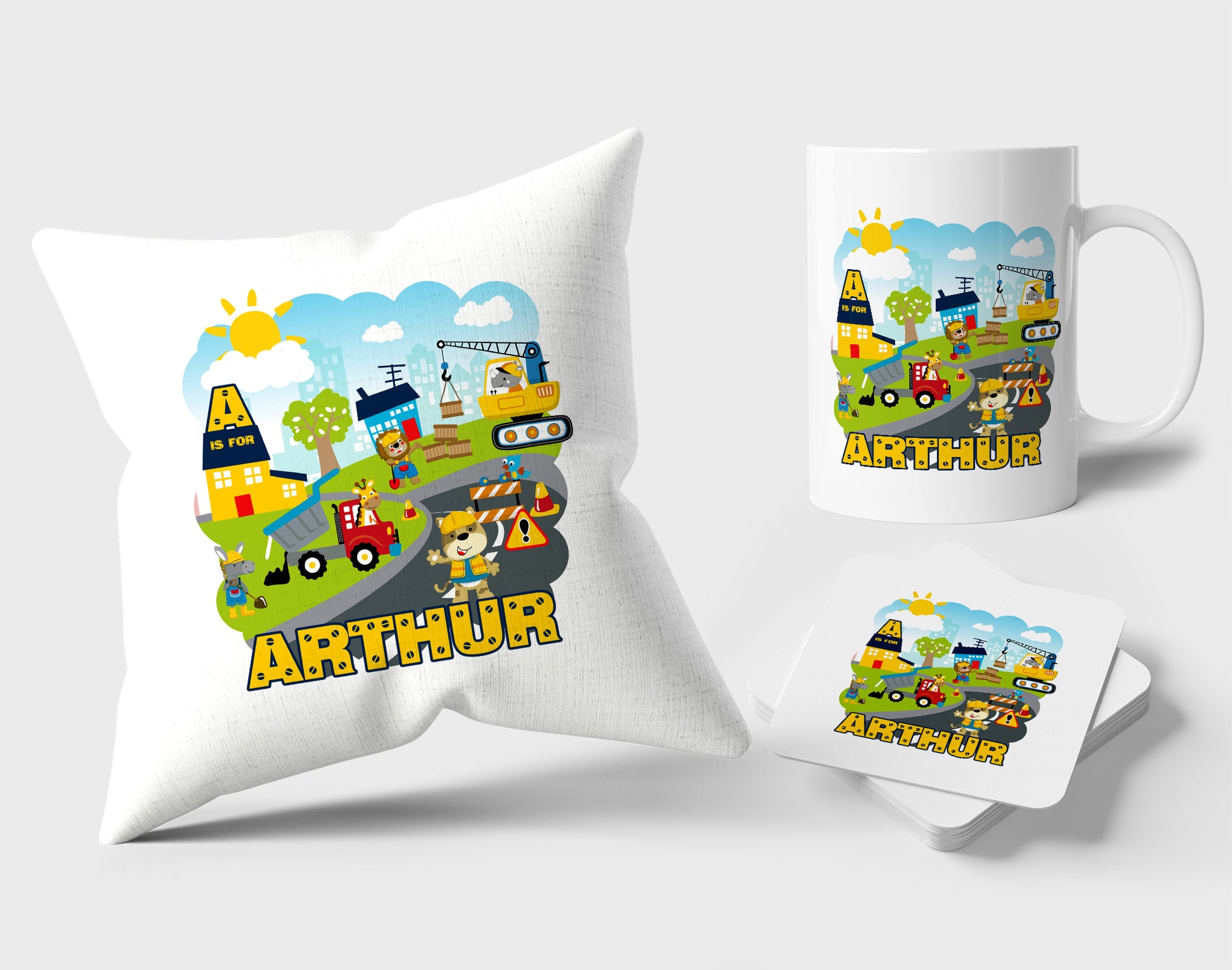 This Construction Alphabet mug has a vibrant and eye-catching design that is perfect for any child's cup. Our polymer mugs are fantastic for children as they are non breakable . The colourful constructions theme brings a friendly and fun element to the mug, making it an ideal gift for the young ones. This design looks amazing on a cushion which will be a great addition to any child's bedroom.