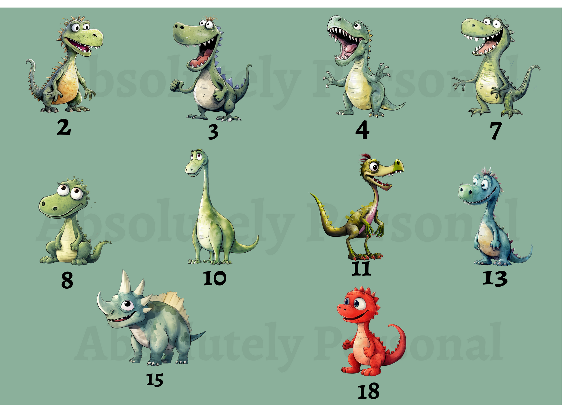 ✔️ A high-quality DTF print featuring up to 10 cute dinosaurs